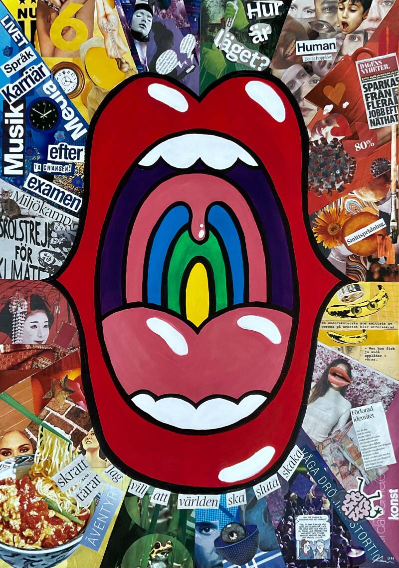 Superbra tolkning och fantastiska färger! Ett konstverk som får en att reflektera över många saker . Supercoolt också med inspiration från Rolling stones munnen! toppen!!!!