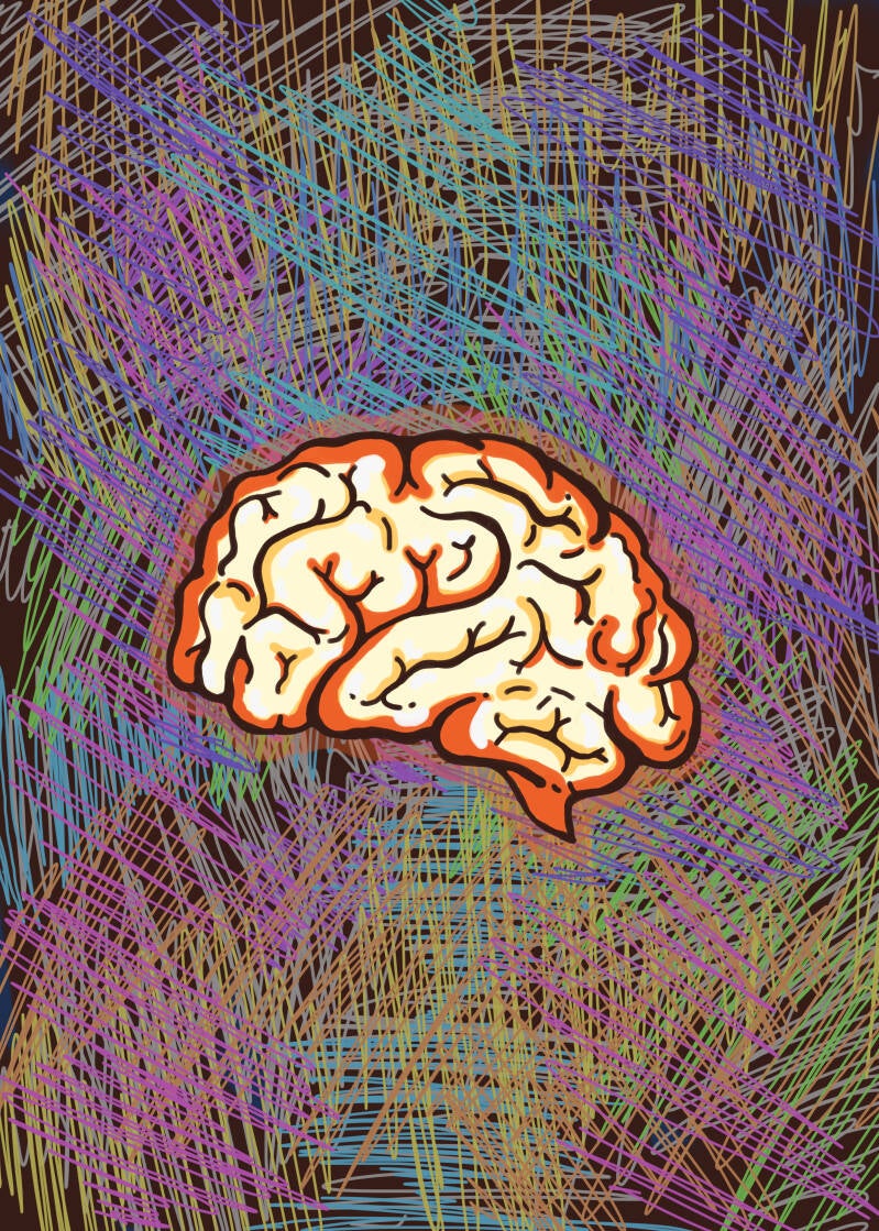 Den här bilden är så uttrycksfull, den är verkligen en gestaltning av skrik och jag gillar teorin att det lagras i hjärnan, risken är verkligen stor att det vräker ut en dag när det blir för mycket: inte alltid i rätt sammanhang eller till rätt person kan jag säga av erfarenhet... bilden är också mycket grafisk som illustration, så fin med de olika texturerna mellan hjärnans mjukhet och vindlar och det skrikiga strecken runt om <3